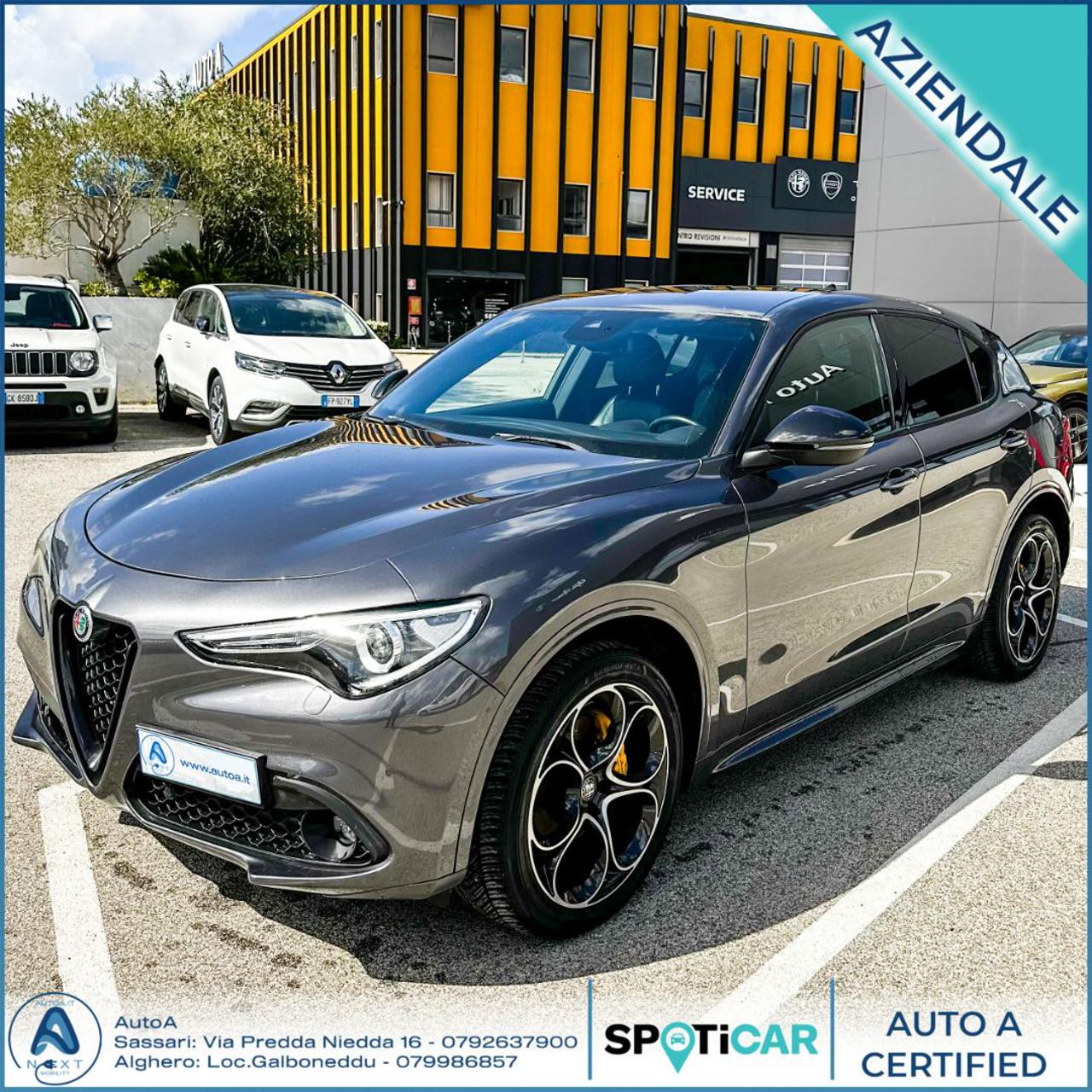 Alfa Romeo Stelvio aziendale, turbo diesel da 210 cavalli allestimento veloce, disponibile già per visione e prova nella nostra sede di Sassari in via Predda Niedda 16. La galleria fotografica verrà completata una volta ultimate le operazioni di ripristino, per prenotare un appuntamento o conoscere nel dettaglio tutte le opzioni di acquisto, è possibile contattare il numero di telefono: 0792637959. Vieni a trovarci in concessionaria per scoprire tutto il nostro parco occasioni e le soluzioni di finanziamento anche ad anticipo zero. Richiedi in sede al nostro responsabile commerciale, le estensioni di garanzia disponibili su questa vettura. Il prezzo non è comprensivo del passaggio di proprietà. Disponibili sul nostro sito o in sede anche altre versioni e colori.